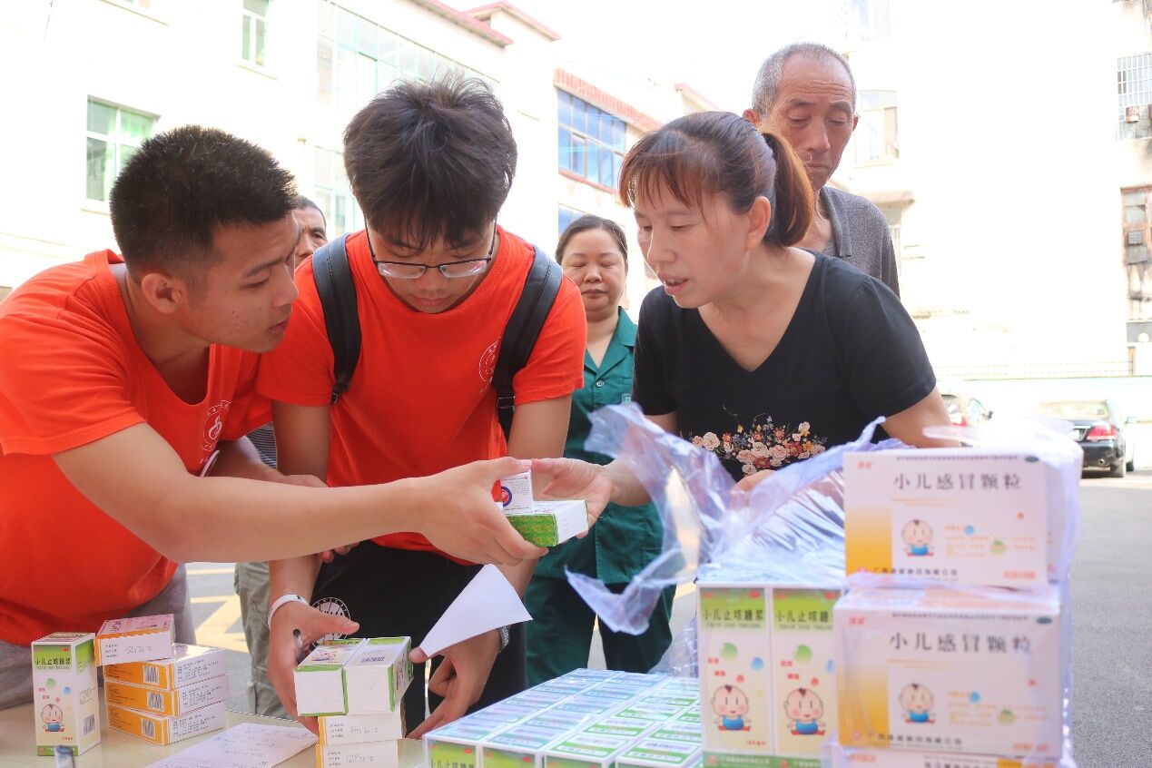 志愿者们发放药品