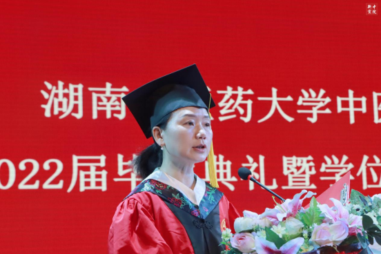 优秀毕业生代表2017级中医学5班的吴英博同学发言。她代表全体毕业生向辛勤培育他们的领导老师表示最衷心的感谢和最崇高的敬意。她表示,作为年轻的中医人,应担起继往开来的重任,对中医保持一颗挚爱之心,为中医药事业美好的明天贡献自己的一份绵薄之力。