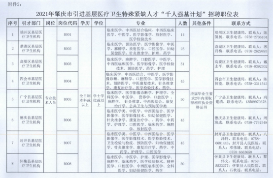 一、 肇庆市引进基层医疗卫生特殊紧缺人才“千人强基计划”专场招聘